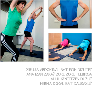 Beharrezkoa da muskulatura abdominala eta pelbikoa berriro programatzea bere euskarri funtzioak bete ditzan atseden nahiz presio haundiagotze uneetan.